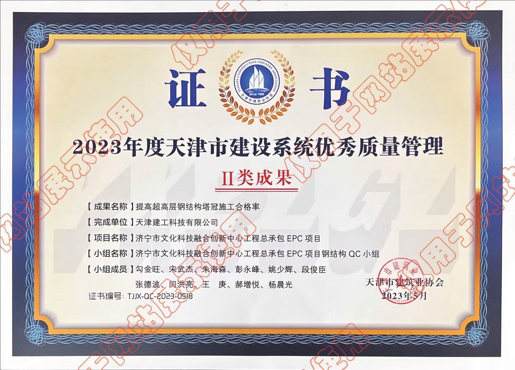 2023年度天津市建設(shè)系統(tǒng)優(yōu)秀質(zhì)量管理Ⅱ類成果_提高超高層鋼結(jié)構(gòu)塔冠施工合格率