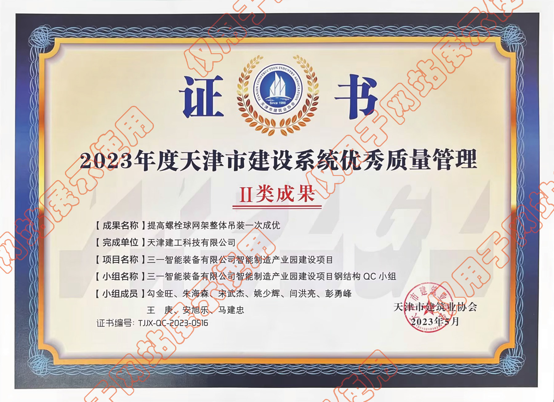 2023年度天津市建設(shè)系統(tǒng)優(yōu)秀質(zhì)量管理Ⅱ類成果_提高螺栓球網(wǎng)架整體吊裝一次成優(yōu)