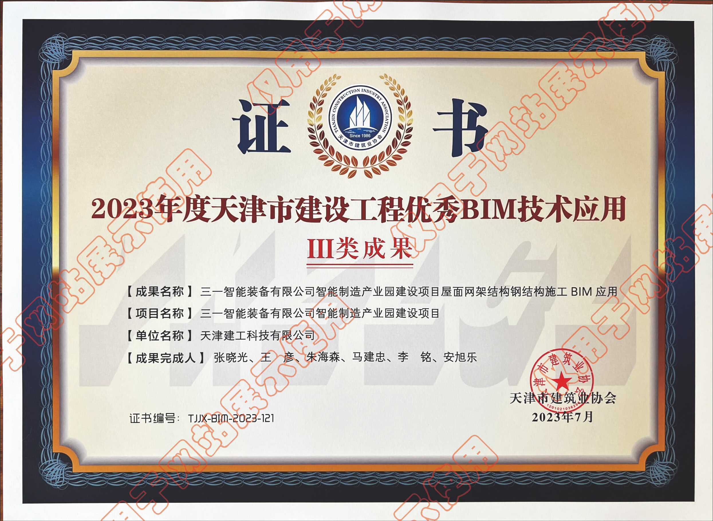 2023年度天津市建設(shè)工程優(yōu)秀BIM技術(shù)應(yīng)用Ⅲ類成果_三一智能裝備有限公司智能制造產(chǎn)業(yè)園建設(shè)項(xiàng)目屋面網(wǎng)梁結(jié)構(gòu)鋼結(jié)構(gòu)施工 BIM 應(yīng)用