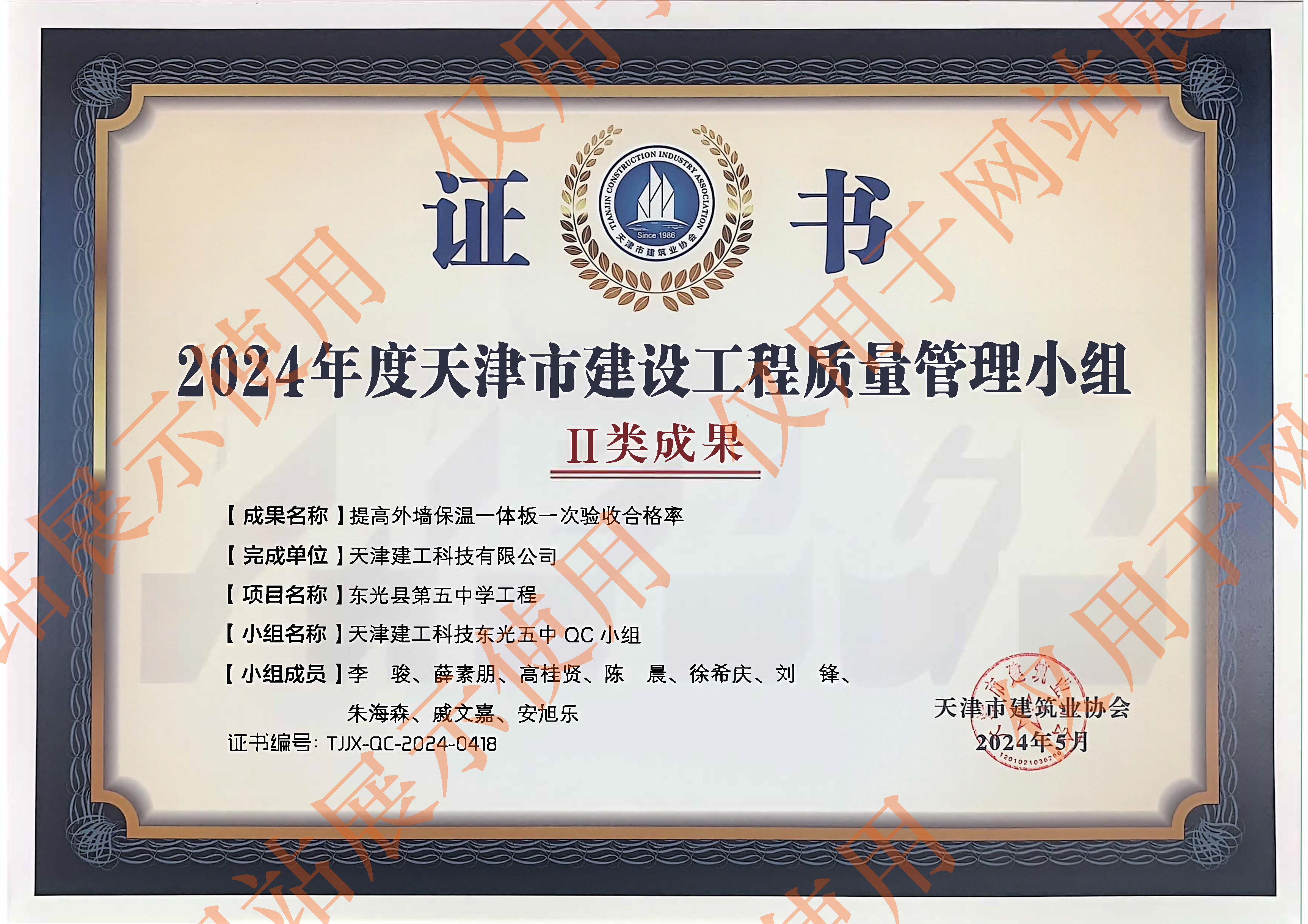 2024年度天津市建設(shè)工程質(zhì)量管理小組Ⅱ類成果_提高外墻保溫一體板一次驗(yàn)收合格率