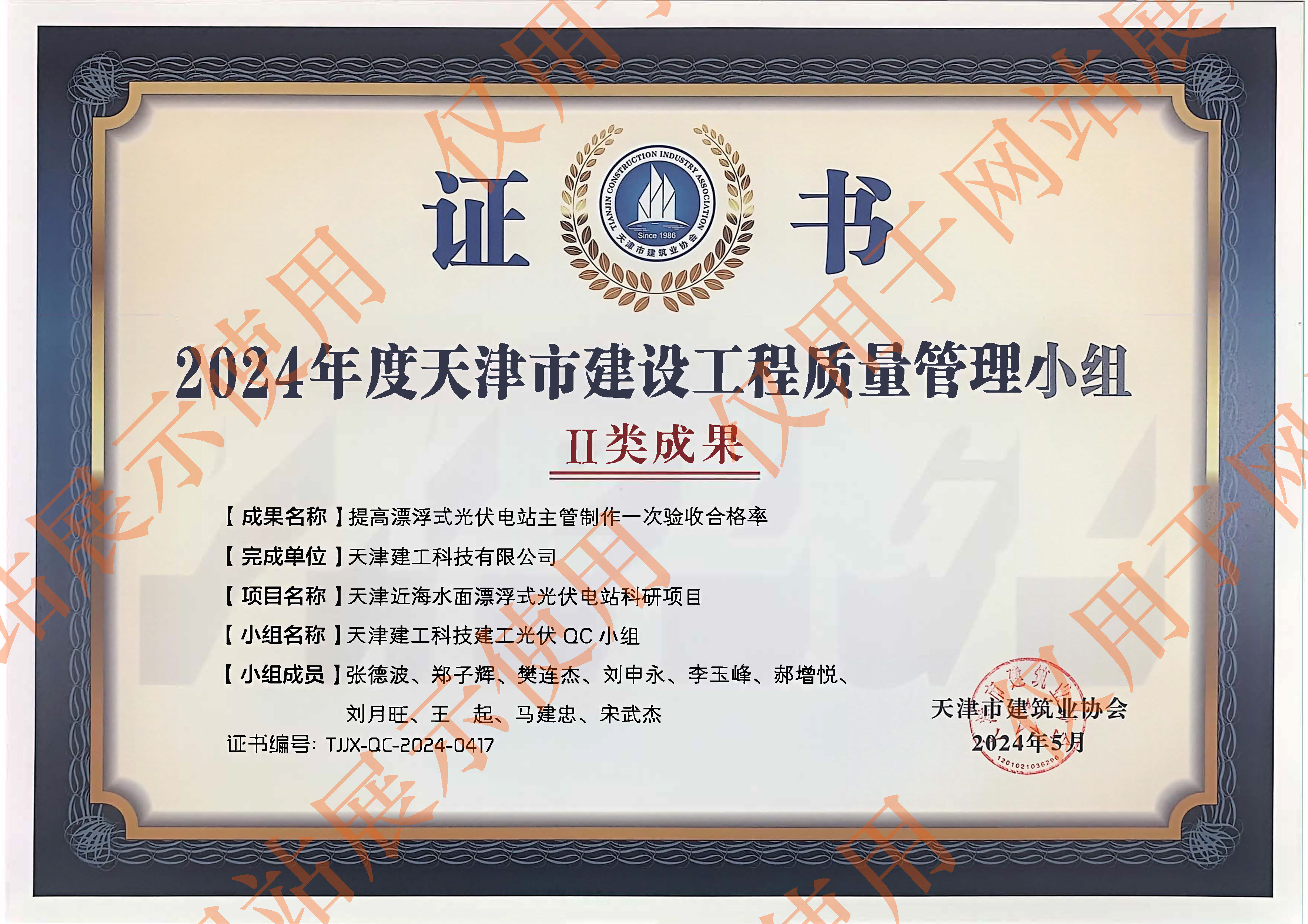 2024年度天津市建設(shè)工程質(zhì)量管理小組Ⅱ類成果_提高漂浮式光伏電站主管制作一次驗(yàn)收合格率
