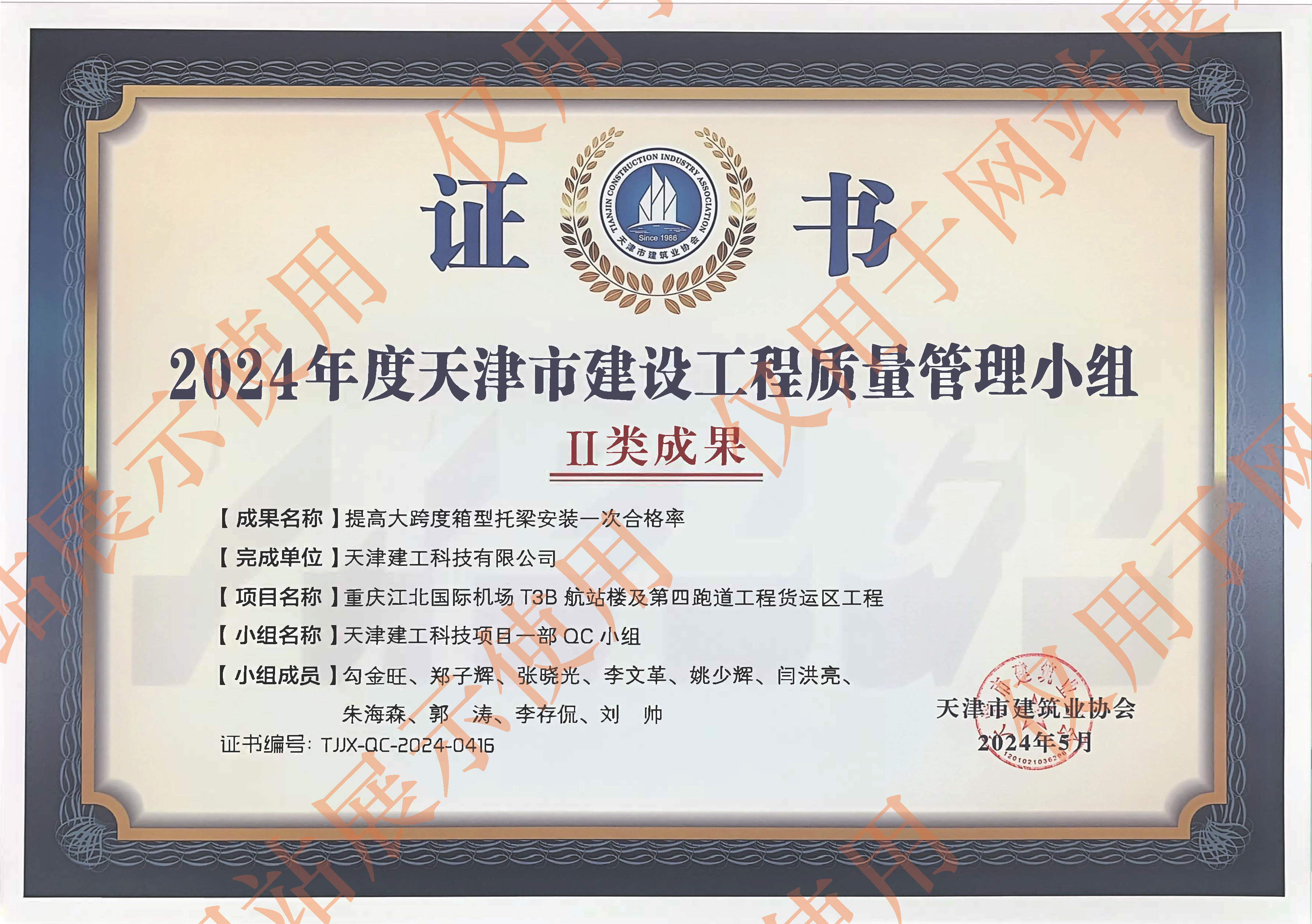 2024年度天津市建設(shè)工程質(zhì)量管理小組Ⅱ類成果_提高大跨度箱型托梁安裝一次合格率