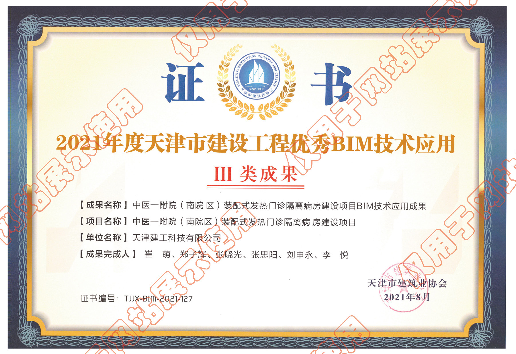 2021年度天津市建設(shè)工程優(yōu)秀BIM技術(shù)應(yīng)用Ⅲ類成果