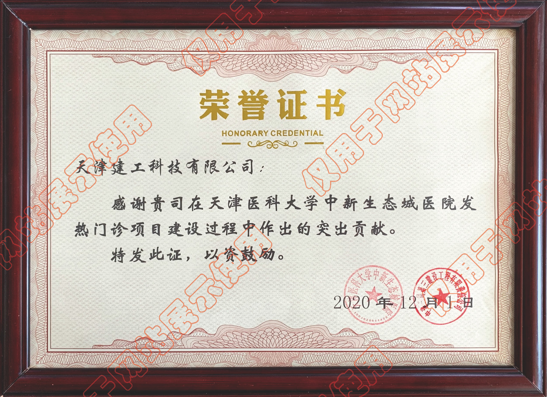 天津醫(yī)科大學(xué)中新生態(tài)城醫(yī)院發(fā)熱門診項(xiàng)目榮譽(yù)證書