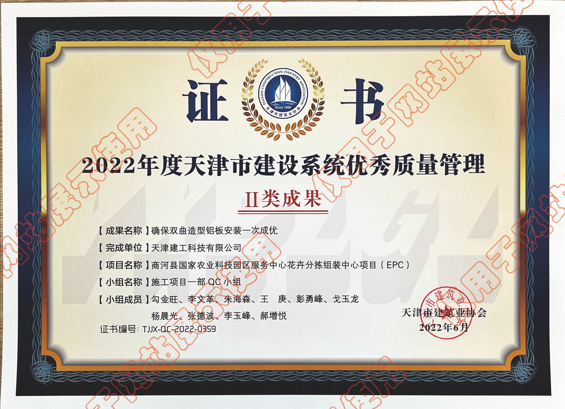 2022年度天津市建設(shè)系統(tǒng)優(yōu)秀質(zhì)量管理Ⅱ類成果_確保雙曲造型鋁板安裝一次成優(yōu)