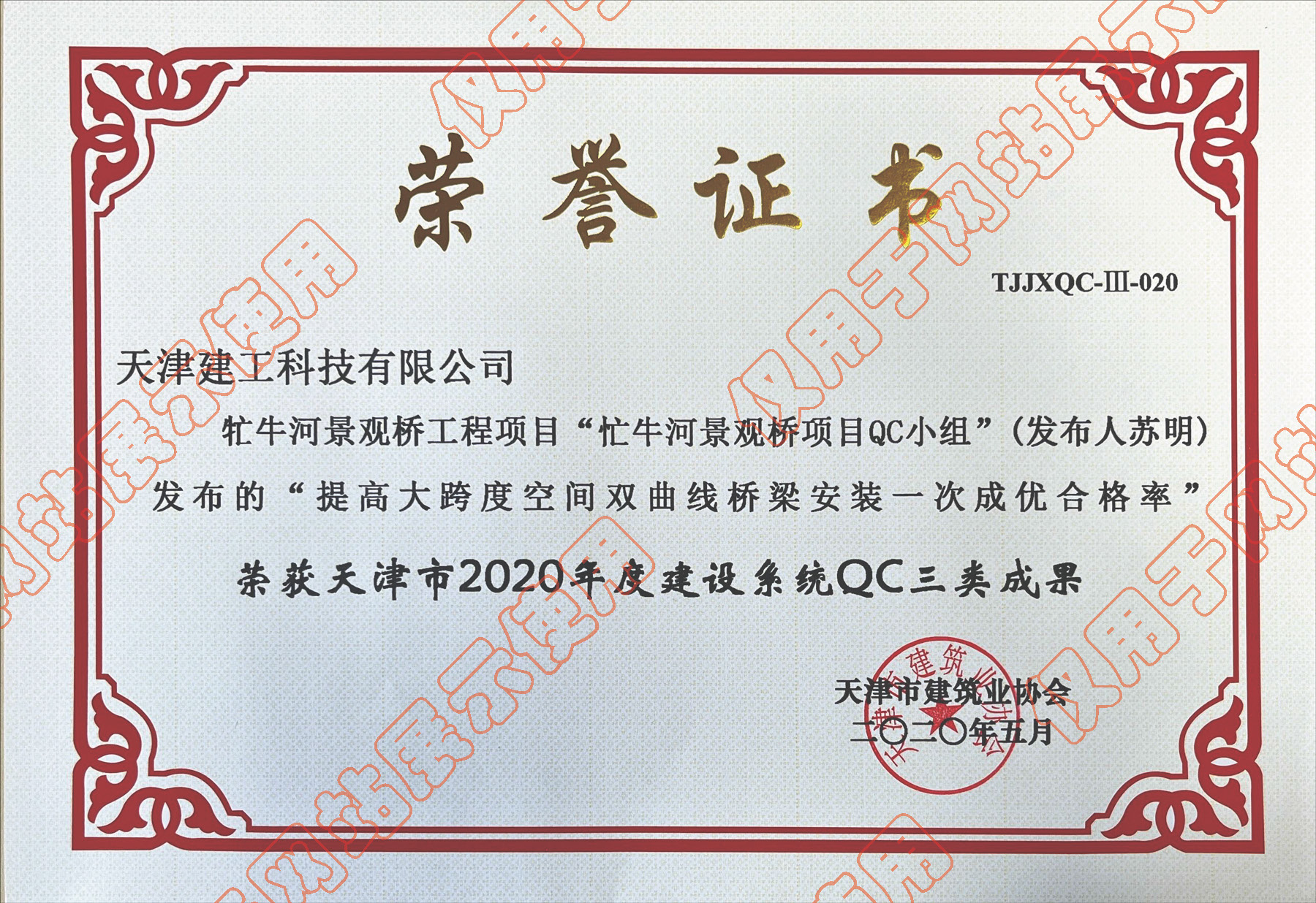 天津市2020年度建設(shè)系統(tǒng)QC三類成果_牤牛河景觀橋工程項(xiàng)目