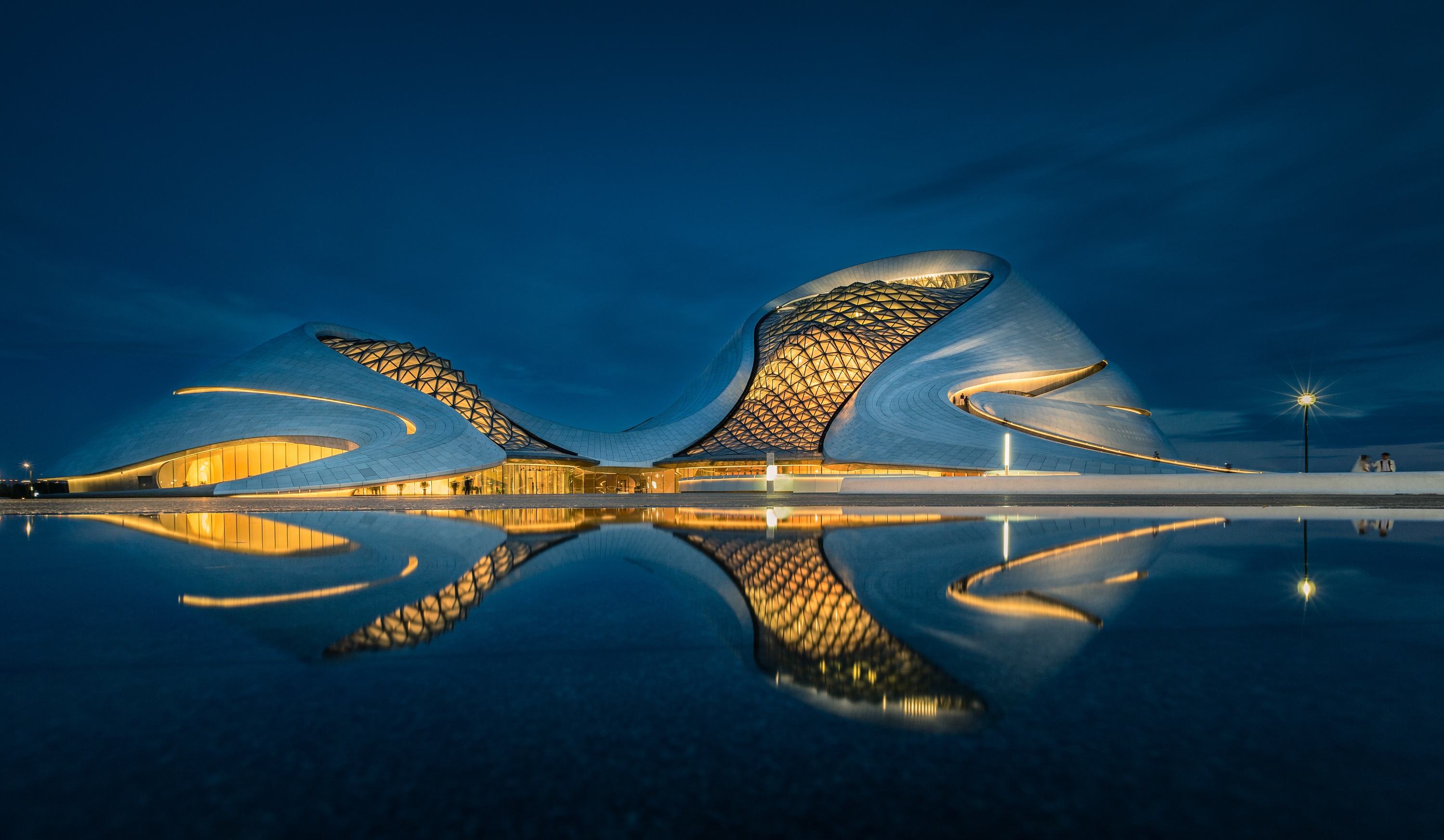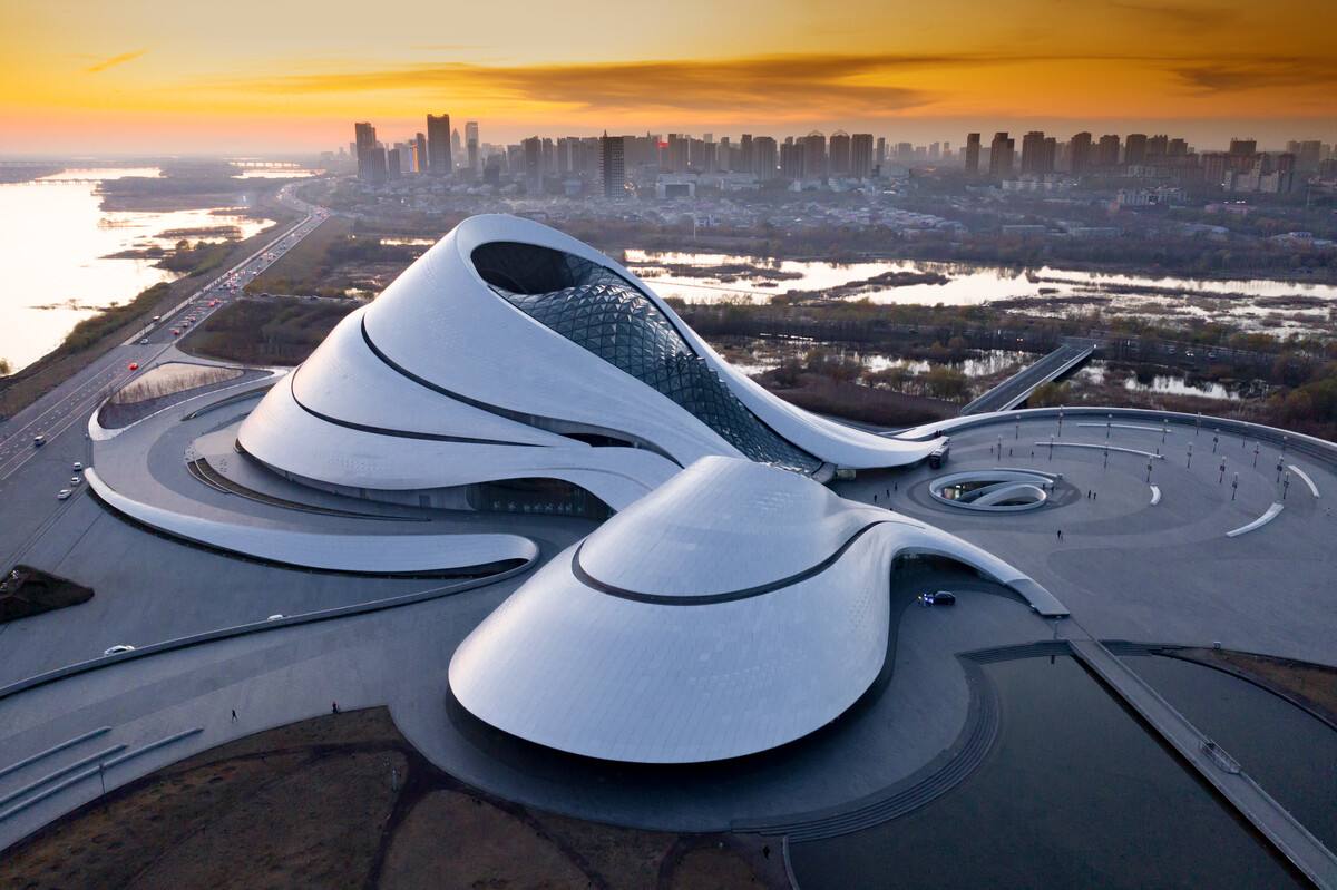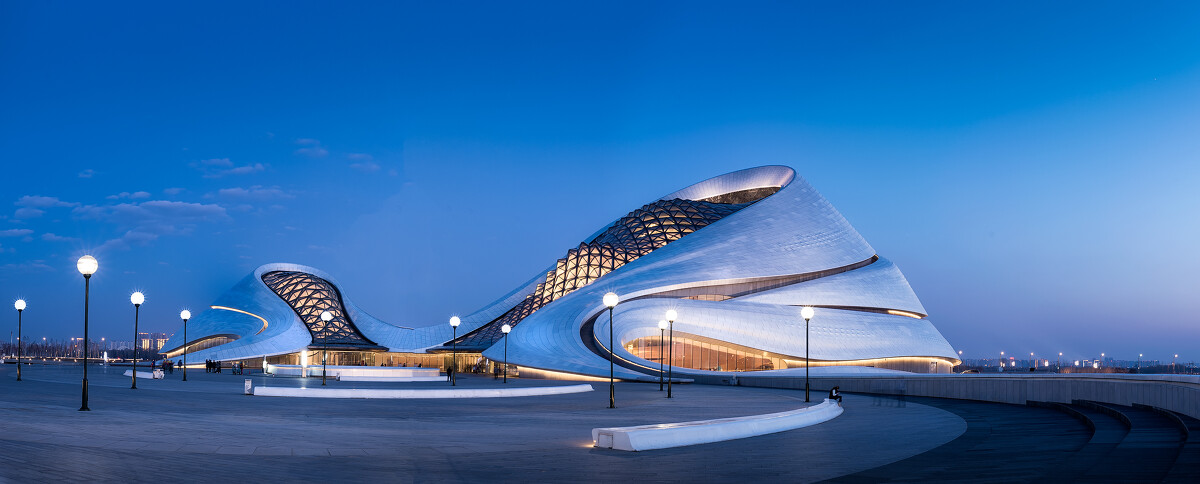 哈爾濱大劇院坐落于中國黑龍江省哈爾濱市松北區(qū)的文化中心島內(nèi),包括大劇院、小劇場,建筑采用了異型雙曲面的外型設(shè)計,是哈爾濱的標(biāo)志性建筑。
